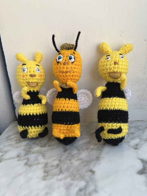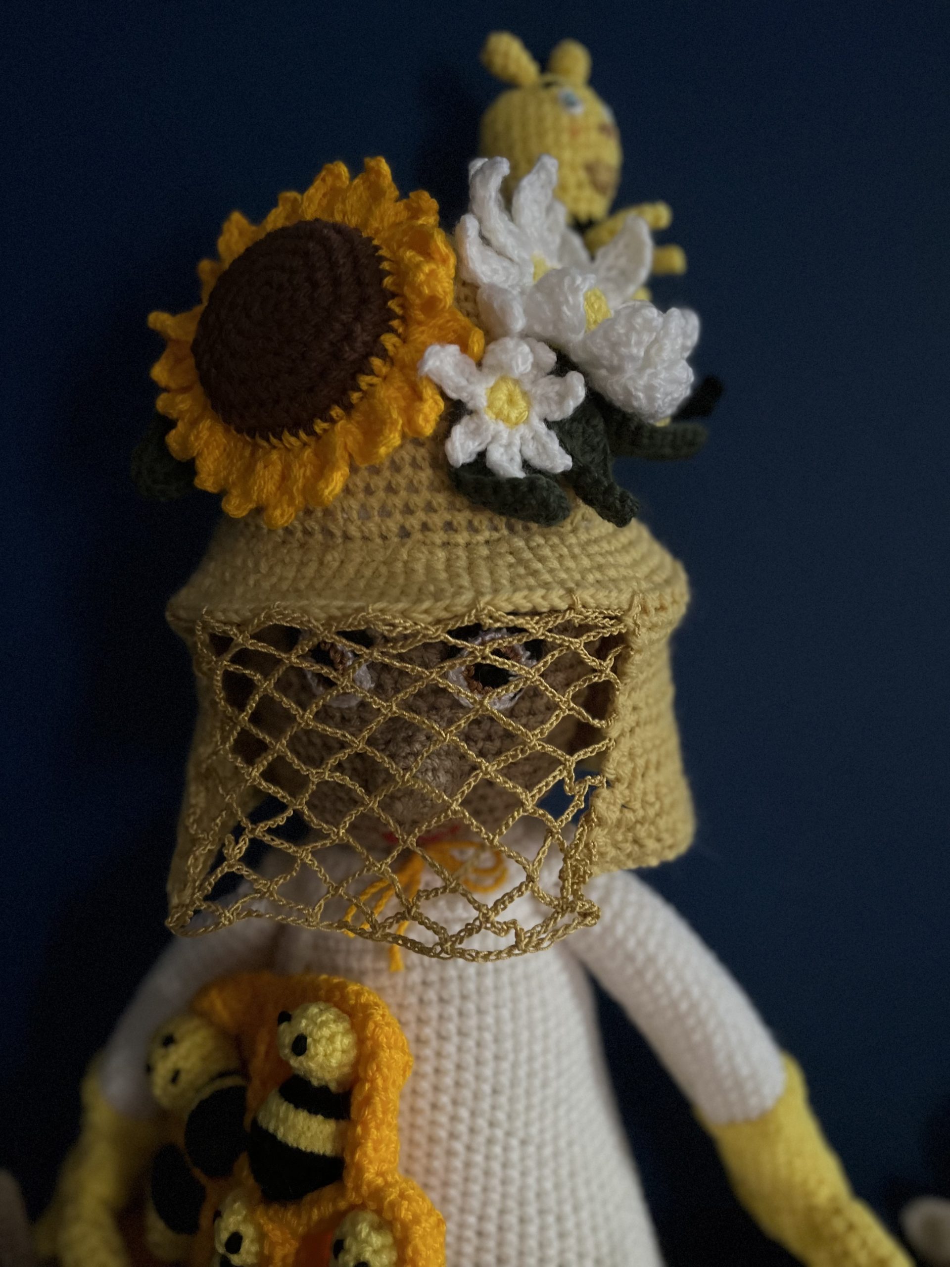 The Beekeeper has simplified hair and bold facial features. He can be customised to be cream, tan or brown; boy or girl; with simplified, long and straight or short and curly hair.